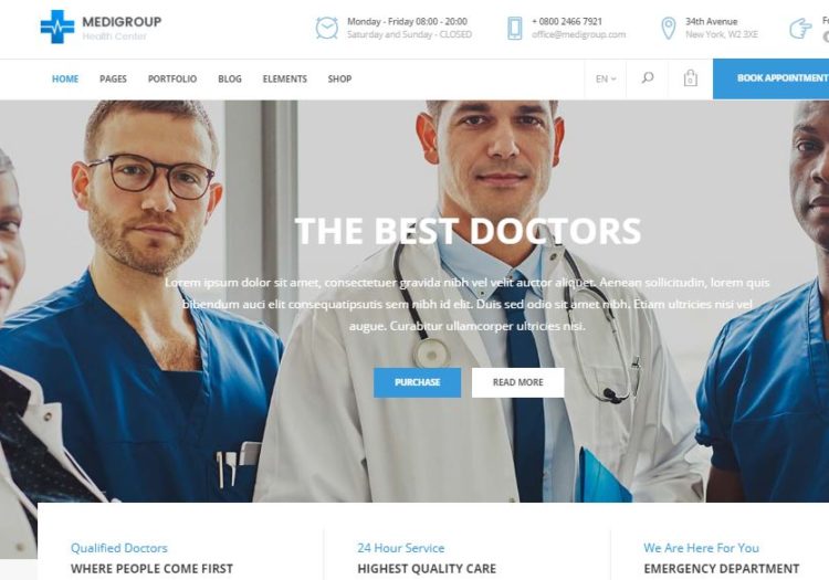 Medigroup is a modern medical website dedicated to health and healthcare in a flash. Every feature, all the beautiful elements and flexible layouts have been carefully streamlined to provide you with a quick and easy website setup experience. Create doctor presentations, introduce every single aspect of your healthcare or medical business, and do it hassle-free and in a contemporary way!